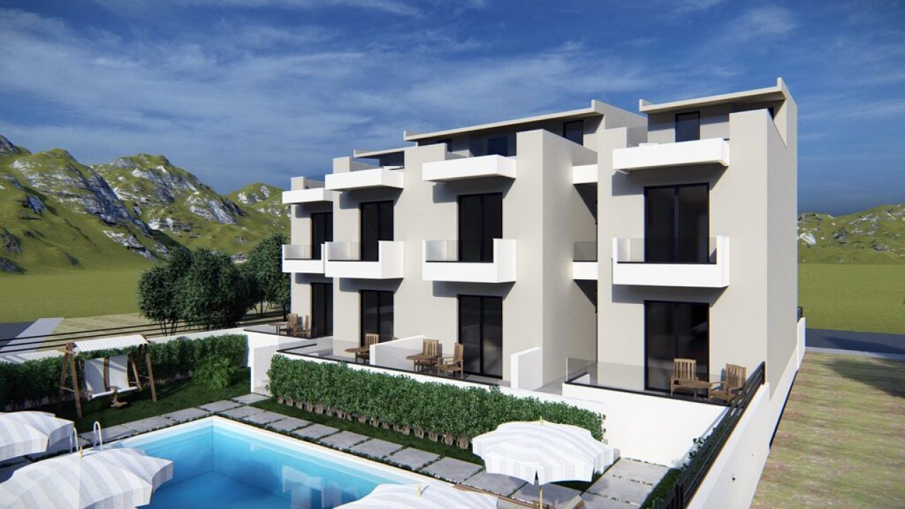 Maisonette ist front-layout Bietet an auf den Berg, in der Stadt, in den Wald, beinhaltet auch Solarwarmwasserbereiter, Garten.