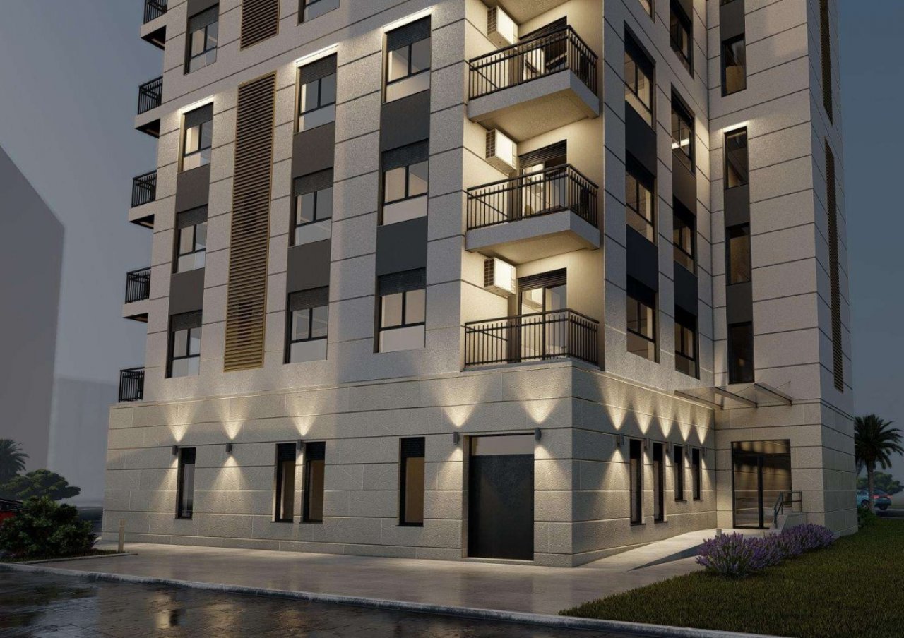Structure of the apartment: hallway, living room with kitchen and dining table, 2 bedrooms, 2 bathrooms and a terrace. The apartment has a big terrace which has 55m2. It has a sea view. It will be delivered with finished floors, tiles, equipped kitchen and air conditioning.
