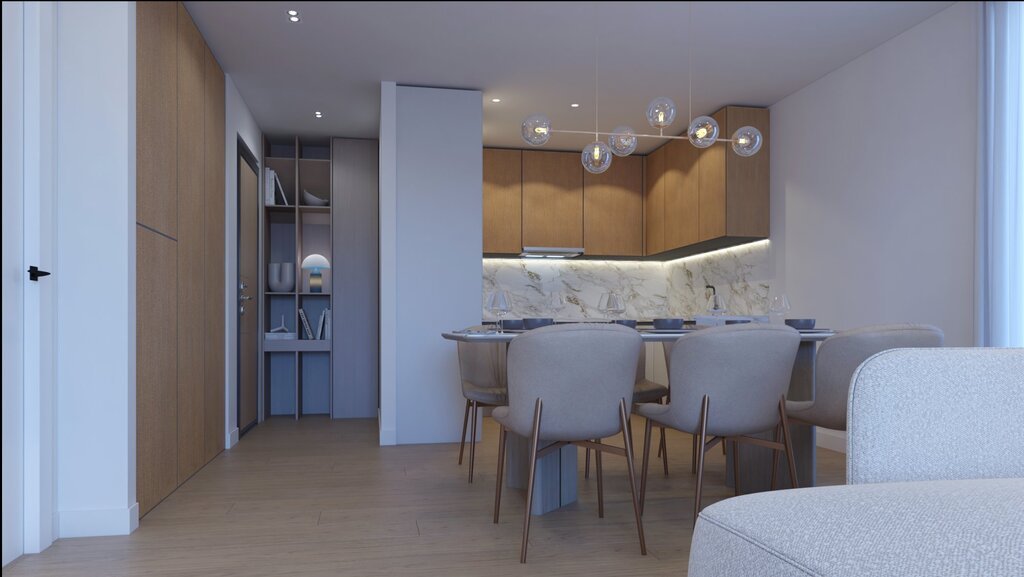 Die Wohnung B1 im 2. Stock verfügt über 2 Schlafzimmer, 2 Badezimmer und eine Wohnfläche von 79 m². Die offene Küche und das Wohnzimmer schaffen eine helle, luftige Atmosphäre, durchflutet von natürlichem Licht. Hochwertige Materialien, elegante Oberflächen und durchdachte Architektur stehen für Komfort und Luxus.