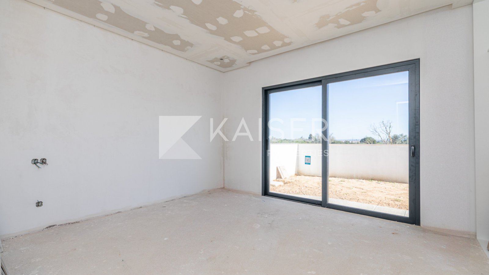 Erdgeschoss: Eingangshalle, Wohn-/Esszimmer mit offener Küche mit direktem Zugang zum Garten und zur Terrasse, Schlafzimmer mit Einbauschränken und Badezimmer.