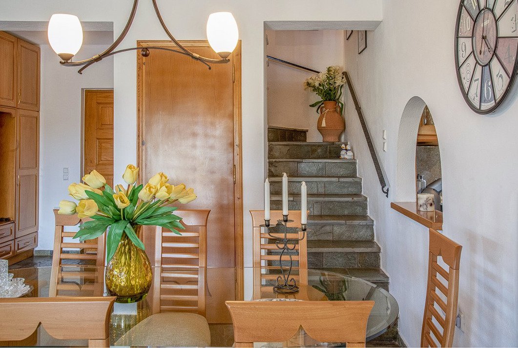 In each apartment, there are 4 bedrooms and 3 bathrooms, a living room, a dining room with a fireplace, and a separate kitchen area. There are also unique terraces where we can enjoy wonderful morning and evening moments admiring the natural landscape. The house was made of genuine materials such as wood, marble, stone, and has a unique Corfiot style.