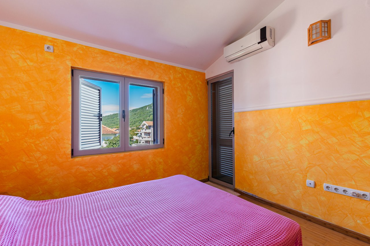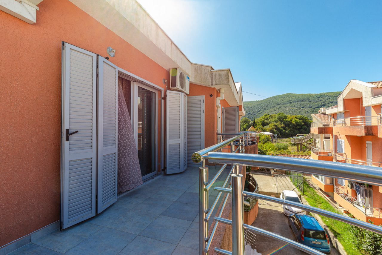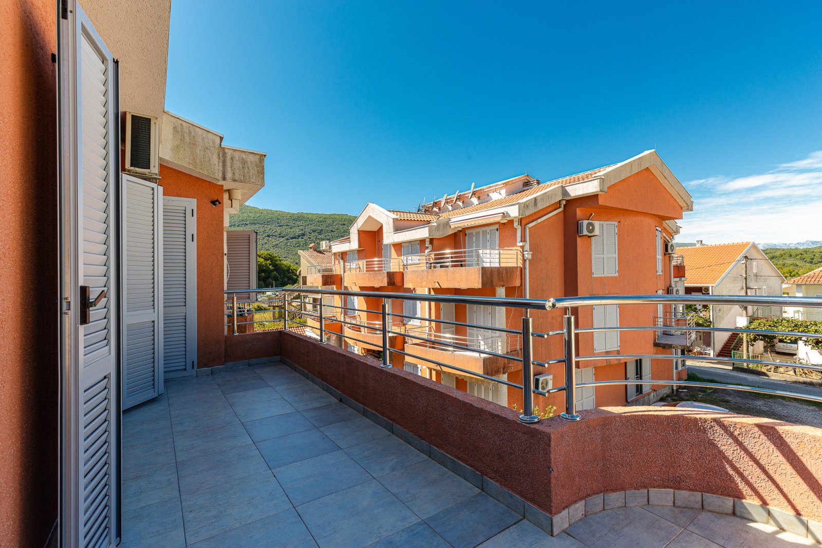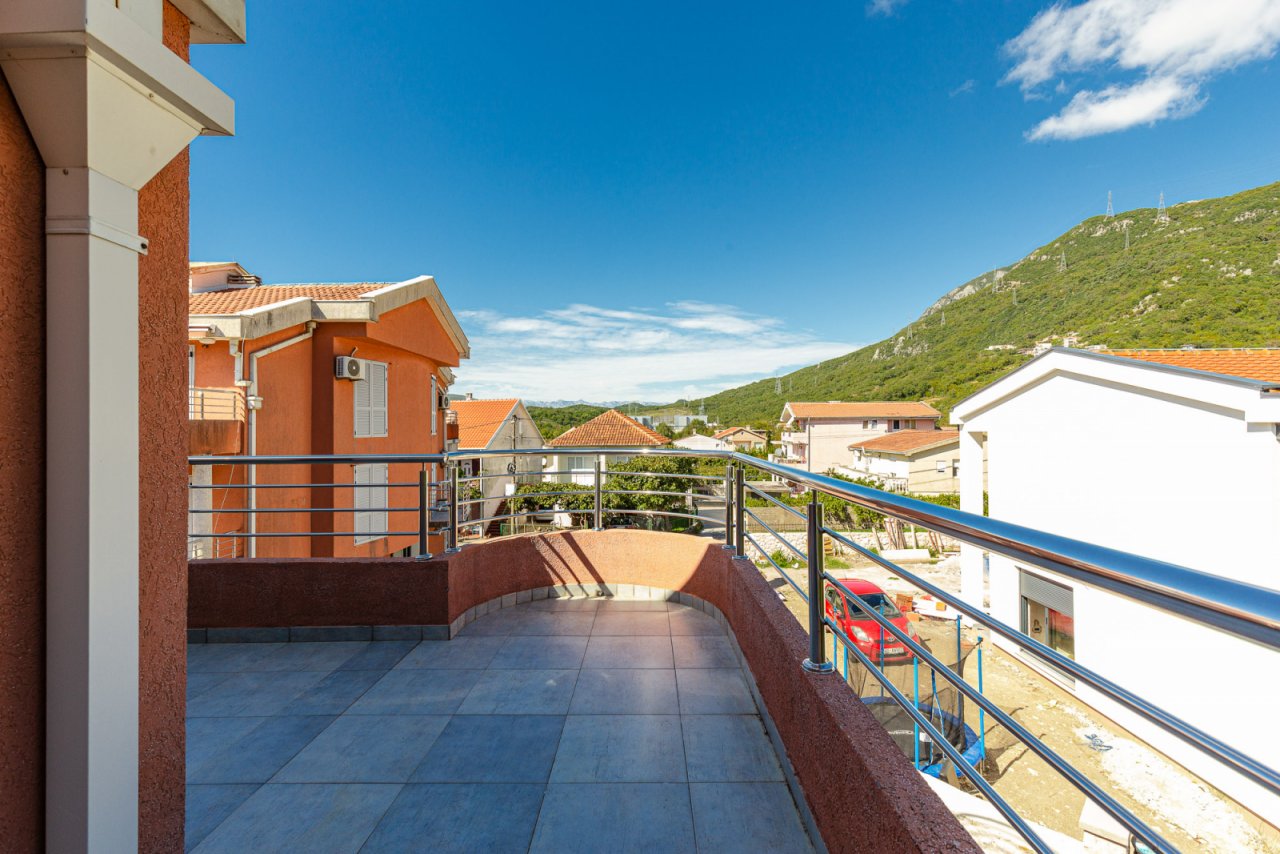 A furnished three-bedroom apartment of 128 m² is for sale in Lastva, just 7 minutes drive from Jaz beach.  The apartment is located in a quiet area and features a spacious terrace with a beautiful view of the city. The building has its own parking. Nearby, you will find a tennis court, markets, and restaurants, adding to the convenience and quality of life. Ideal for family living or vacation, fully equipped and ready to move in.