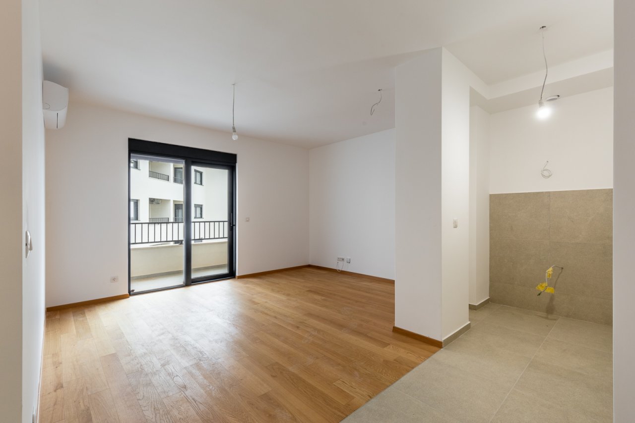 One-bedroom apartment for sale in Bečići, in a quiet location near the sea. The apartment has an area of ​​44 m2 and is located on the second floor offering a beautiful sea view. Layout of the apartment: living room combined with open kitchen, bedroom, bathroom and terrace with a sea view. The apartment is unfurnished, giving the future owner the opportunity to design it according to their own preferences and needs. The building is new construction with all necessary urban amenities nearby. A great opportunity for investment or living in an attractive location. Shops, cafes, restaurants, post office, bus station and all important institutions are within walking distance from the apartment. The apartment is located only 500 m from the sea.