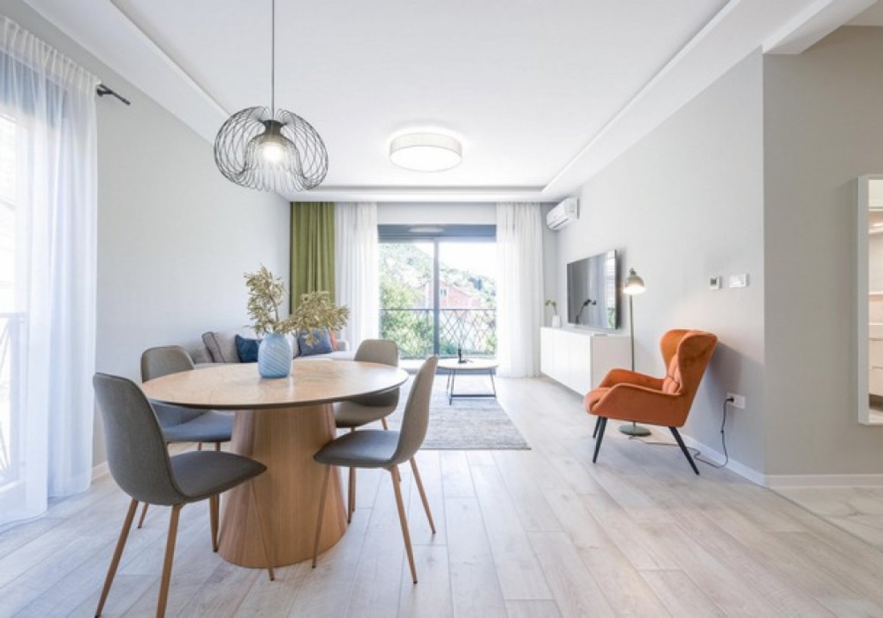 Tivat, the center. A new three-bedroom apartment. The house was built in 2023 The distance to the sea is 300m. The area is 81 sq.m. Sea view Seco