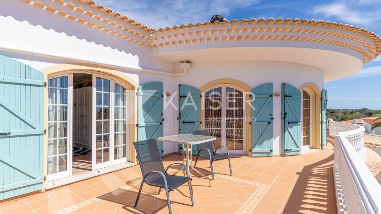 This south-facing magnificent 5-bedroom villa is located in a quiet and peaceful area, near the amazing Galé beach and the Salgados golf course, offering breathtaking sea views and easy access to all amenities such as restaurants, supermarkets, shops, bank, pharmacy and school. The Nobel International School is just a 15-minute drive meanwhile the amazing Algarve Shopping is within a 10-minute drive. The property comprises: