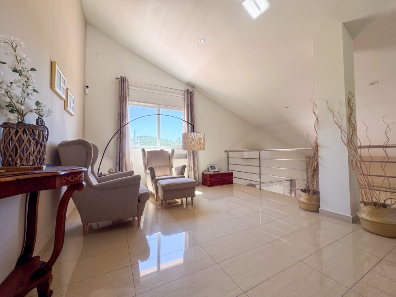 The property includes four spacious bedrooms, one of them with a walk-in closet, and three well-appointed bathrooms. Each room is filled with natural light and offers beautiful views of the surrounding hills and greenery, bringing a constant sense of peace and privacy.