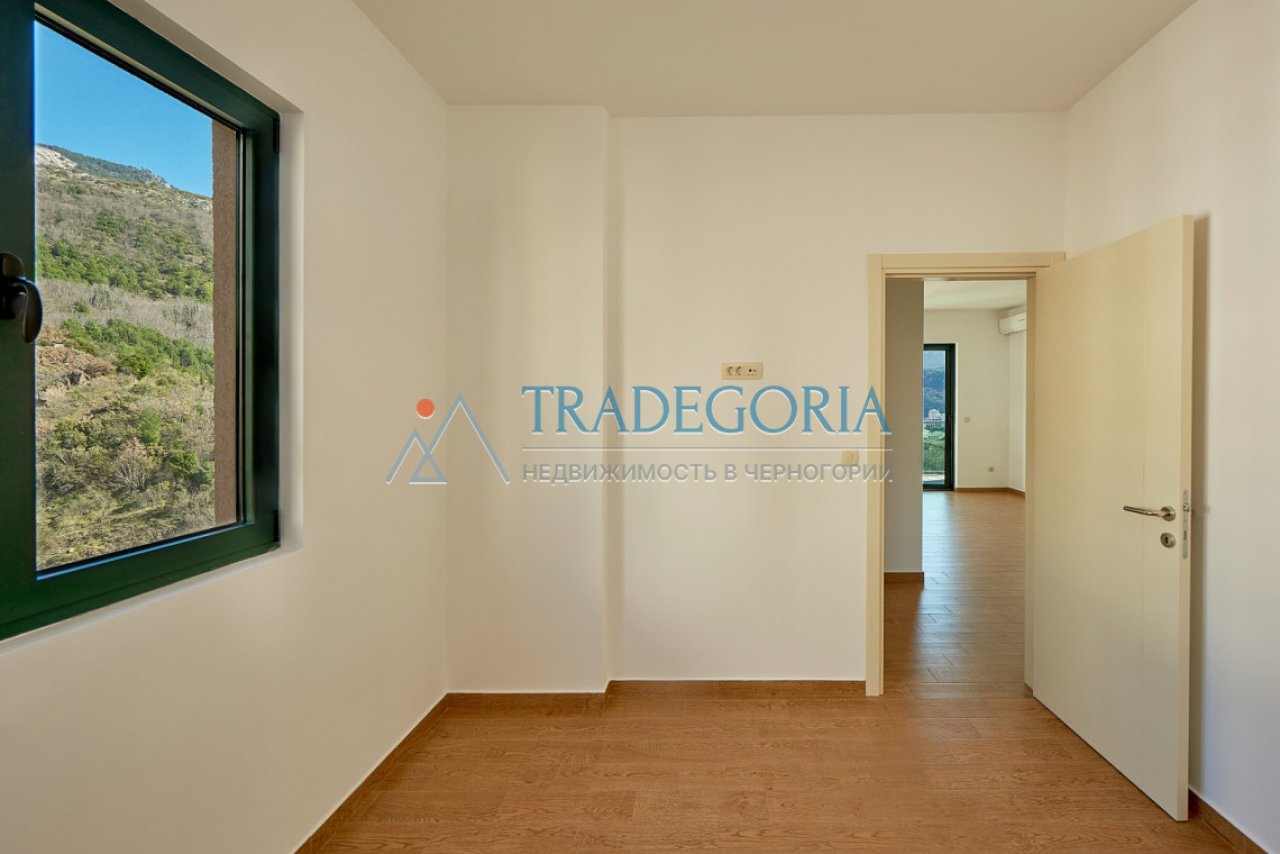 For sale is a cozy apartment in the prestigious resort village of Becici. ✅ Area - 63 m² ✅ 2 spacious bedrooms ✅ High first floor of a new building with an elevator ✅ Large terrace with a beautiful view of the sea and mountains ✅ Newly built house, well-kept entrance, quiet area
