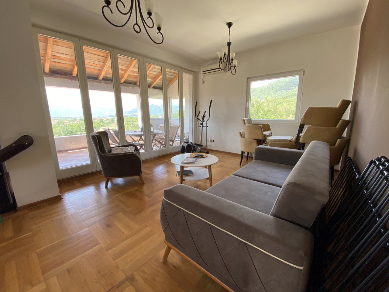 House for sale in Radanovici, Kotor. The house has an area of 392 m2. On the first floor there are two apartments that have a bedroom, a bathroom, a kitchen with a dining room, a living room and a terrace. On the second floor is a two-room apartment with a spacious glazed terrace and a view of the sea. And the third floor is a four-room apartment. The yard of the house is landscaped, with parking for 4 vehicles. And with the house comes a workshop with an area of 60 m2.