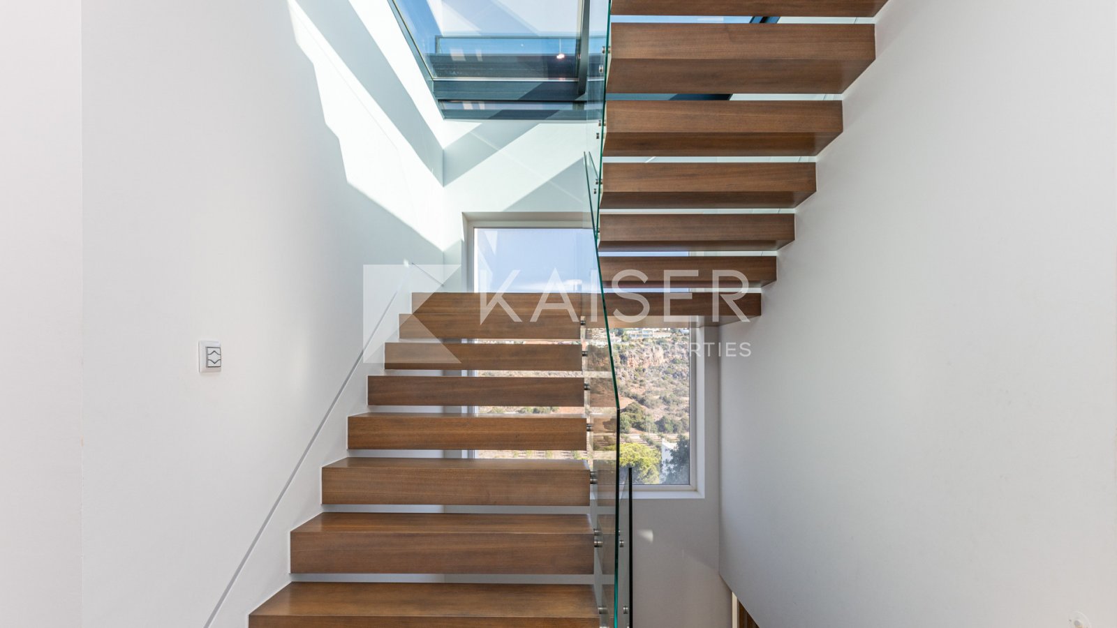 Souterrain: Ruime garage voor 3 voertuigen en een berging. Begane grond: woon- en eetgedeelte met openslaande deuren naar het zwembad en een overdekt terras met zitgedeelte, open keuken, slaapkamer met inbouwkast en openslaande deuren naar een terras en 2 badkamers (1 en suite) . Eerste verdieping: 3 slaapkamers met ingebouwde kasten en openslaande deuren naar privéterrassen, 3 en-suite badkamers, kantoor momenteel in gebruik als slaapkamer. Dakterras: met prachtig uitzicht en voorbereid (voorzien van elektriciteit en water) voor het plaatsen van een jacuzzi.