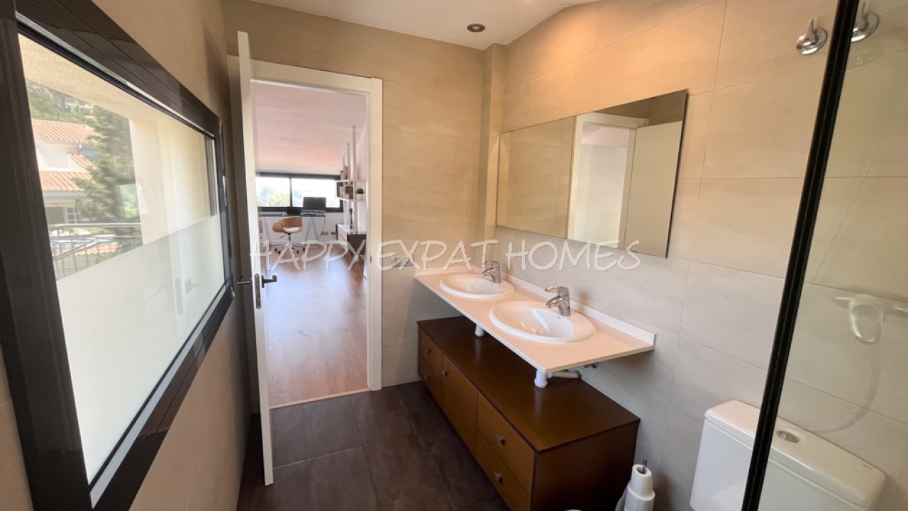 Op de begane grond vindt u een volledig uitgeruste keuken, een gastentoilet en een zonnige woon-eetkamer met dubbele toegang tot de tuin en het zwembad. Voor onze klanten die de voorkeur geven aan een open ruimte van de keuken naar de woonkamer, is er een eenvoudige oplossing om het naar eigen smaak te verbouwen.