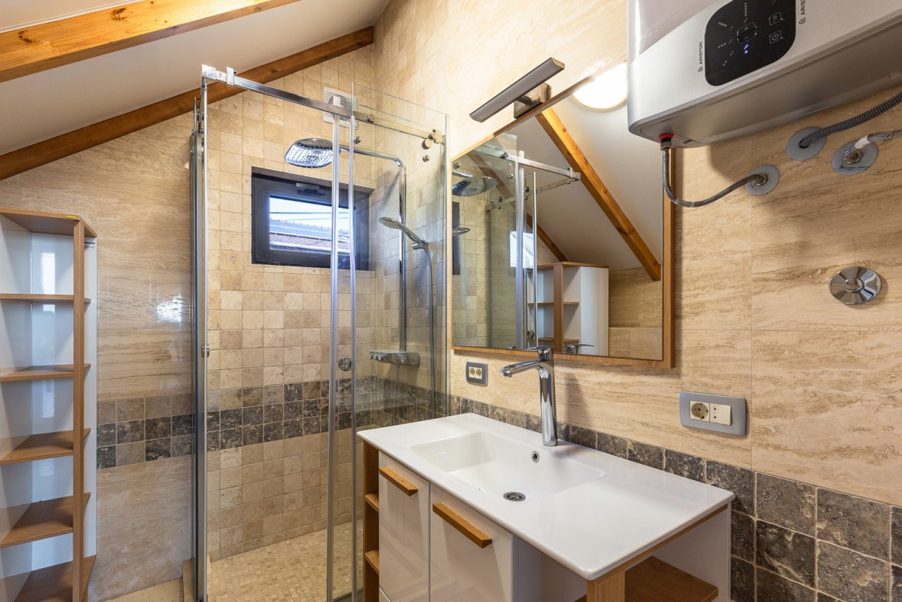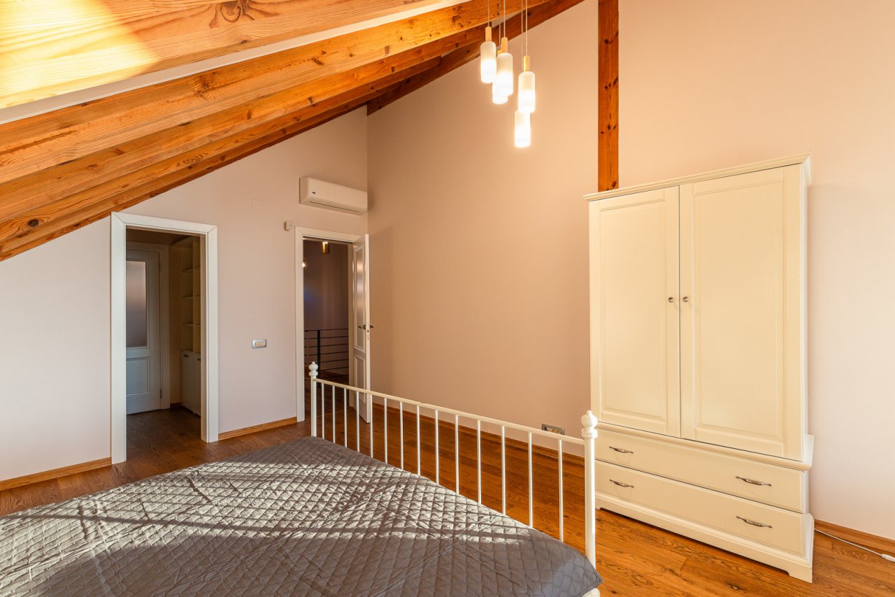 Contemporary Half-Timbered Home in Tivat Hill (2019) Elegant 230 m² residence featuring Siberian Larch timber framing and modern glass elements, combining sustainable design with practical comfort. The thoughtfully designed layout includes a large kitchen, spacious living room, 3 bedrooms, and 3 bathrooms with heated floors. The homes energy-efficient construction ensures warmth during winter months while reducing environmental impact. Set on a 150 m² plot, this property offers scenic views from both floors. The interior features quality Italian furniture and includes a flexible dressing room space that can be converted into an additional bedroom or home office as needed. The landscaped garden features an automatic irrigation system for effortless maintenance. Features: ·        Siberian Larch and glass construction ·        Smart security system with mobile app integration ·        Convertible dressing room ·        5-car parking area ·        Custom Italian furniture ·        Views from ground and first floor The propertys location in Tivat Hill presents opportunities for both family living and investment, with strong rental demand in the area.