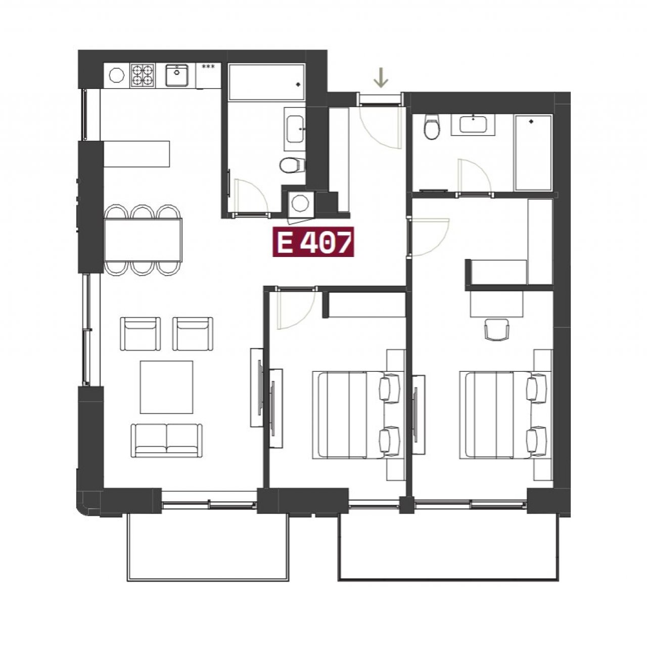 Количество спальных комнат: 2