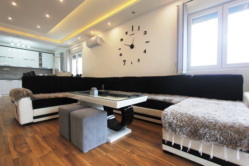 House overlooking the sea in Bjelisi. House area 241 m2, plot area 280 m2. House plan: On the first floor...
